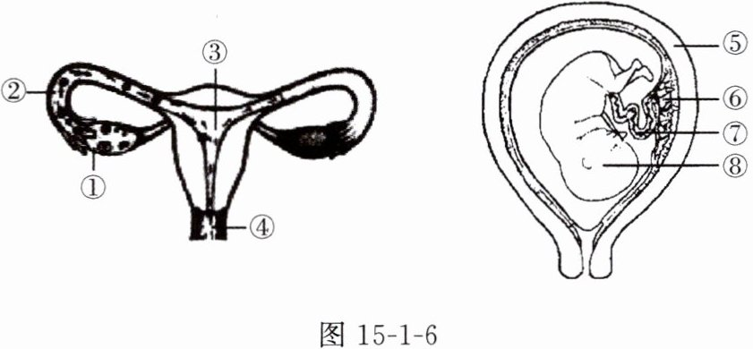 8.(科学思维)图15-1-6是女性生殖系统以及胎儿、脐带和胎盘的示意图,请回答下列问题。