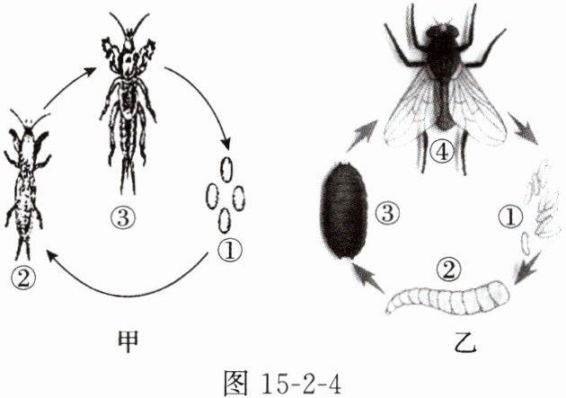 7. 图15-2-4表示两种昆虫的发育过程,请据图回答下列问题。