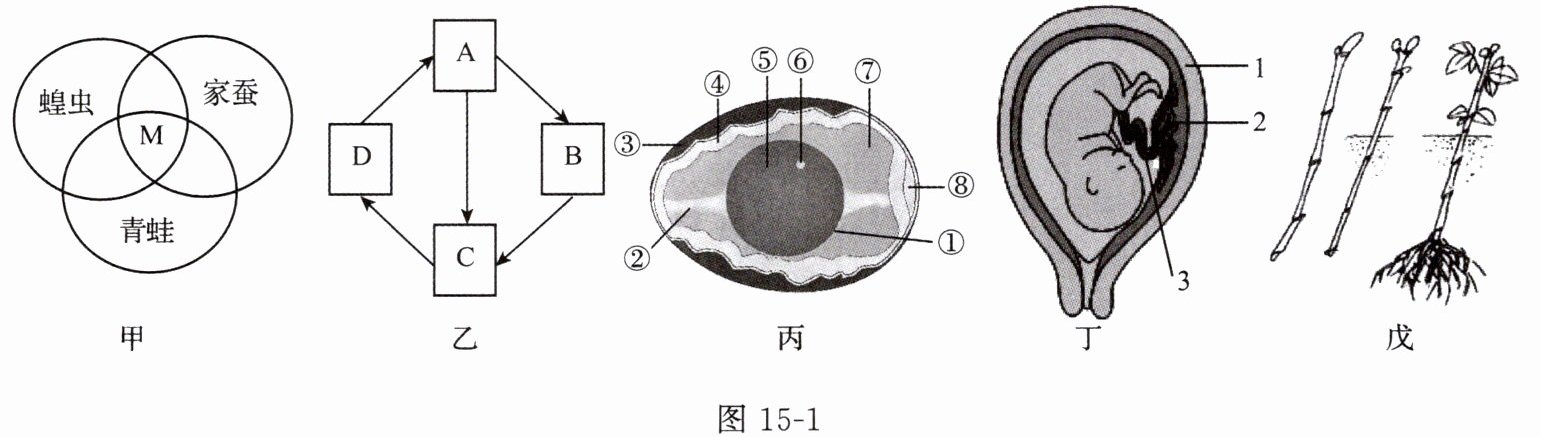 (均填序号)从母体获得所需要的营养物质和氧气。(5)图戊所示的生殖方式为
