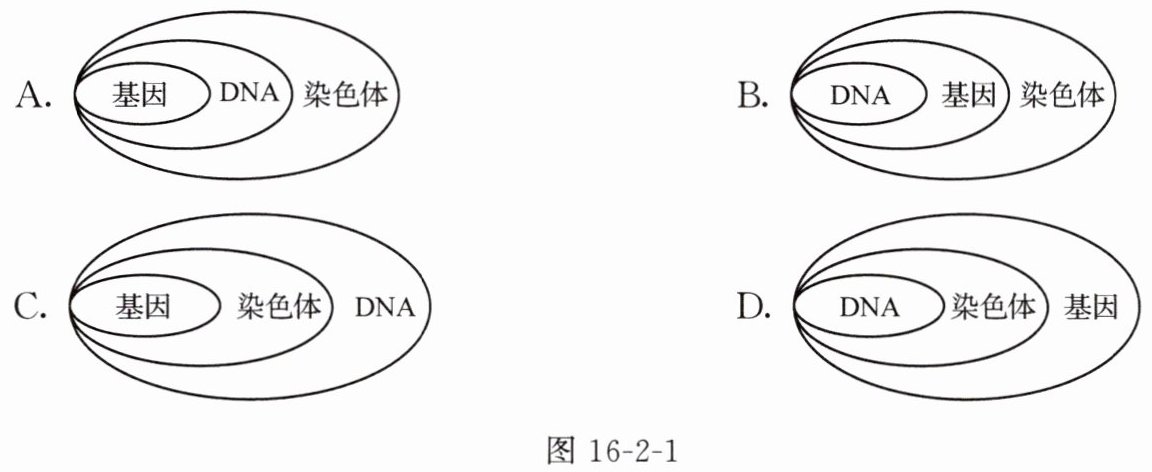 7. 图16-2-1中,能正确表示染色体、DNA、基因三者关系的是(