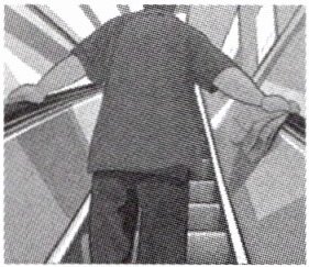 14. 如图所示,工作人员站在上行的扶梯上擦扶手的短视频引起广泛争议。电梯运行时,以扶梯的扶手为参照物,他的毛巾是