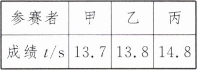 10. 体育课上,甲、乙、丙三位同学进行百米赛跑,他们的成绩如表所示,则获得第一名的是