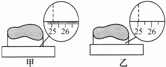 12. 清华附中校本经典题 通常情况下,人站立时的身高是脚长的7倍,如图是小明用两把分度值不同的刻度尺测出自己脚长的图片。