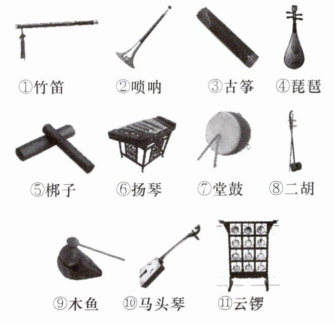 3. 中国民族乐器按演奏方式分为:吹管乐器、拉弦乐器、弹拨乐器、打击乐器。按照发声原理的不同分为:体鸣乐器、膜鸣乐器、气鸣乐器、弦鸣乐器。下列中国民族乐器中属于体鸣乐器的有