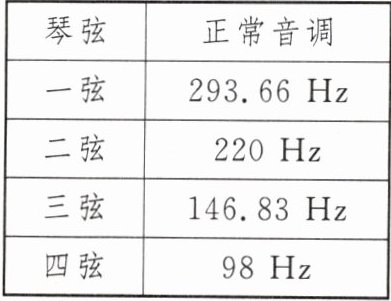(填“一弦”“二弦”“三弦”或“四弦”),最后给自己的琵琶刷上喜欢的颜色,一把独一无二的琵琶就做好了。四根弦的正常音调如表所示,小岩用调音器给琵琶调音时,发现三弦显示的音调为 125 Hz,接下来他应该将三弦调