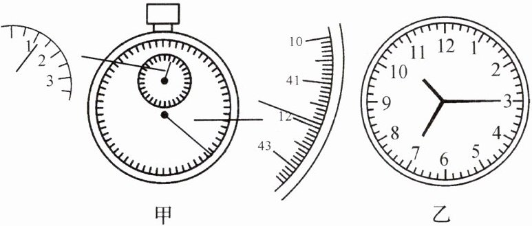7. 如图所示是两种常用的测量时间的工具,甲表是机械秒表,它现在的读数是