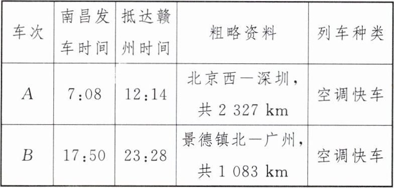 6. 小明的家在南昌,他的爸爸最近要去赣州办事,小明上网一查,发现从南昌到赣州的列车很多。下面是他查到的列车时刻表中的一部分,则坐A次列车从南昌到赣州需要的时间是(