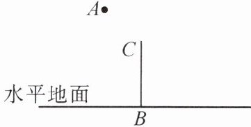 4. 如图所示,在路灯($A$点表示)的照射下,地面上出现了小树$BC$的影子$BD$,请根据光的直线传播知识画图确定点$D$的位置。