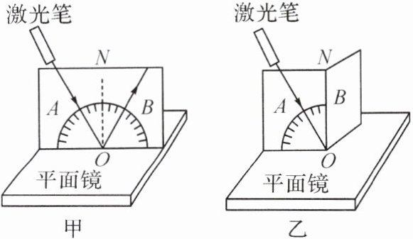 (3)如图乙所示,把光屏 B 绕 ON 向后折转,发现看不到反射光的径迹,表明:反射光线、入射光线和法线在