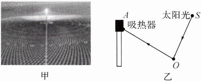 (1)如图乙所示,为解释这一原理,我们假设 S 点为太阳,反射光线刚好可以射到 A 点,请过图中 O 点画出平面镜的位置。