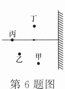 6. 如图,一束光垂直入射到平面镜上,反射光线经过的点是(