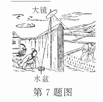 7. 汉代的《淮南万毕术》中记载:“取大镜高悬,置水盆于下,则见四邻矣。”如图装置是世界上有记载的最早的潜望镜,其中高悬的大镜是