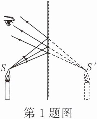 4. (2024·德阳)某实验小组利用如图所示的实验装置探究平面镜成像的特点,$S'$为烛焰上$S$点的像点,请在图中画出人眼看到像点$S'$的一条光路。