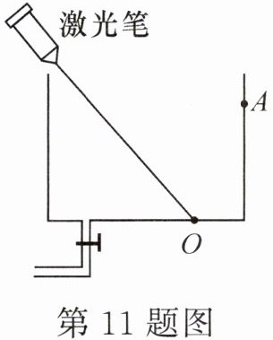 11. 如图所示,一支固定好的激光笔向空水槽底部固定点O射出一束激光。向水槽内加水使水面上升至A点,此时光斑在O点