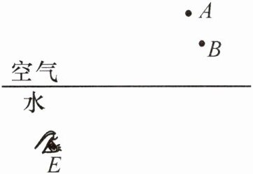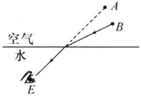 (填“A”或“B”)点是像所在的位置,在图中画出水下E处的潜水员看到路灯的光路图。