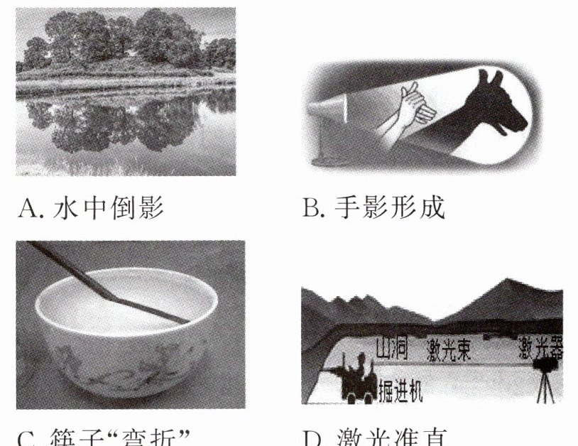 7. (2023·河北)如图所示的光现象中,与“潭清疑水浅”中“水浅”形成原理相同的是(