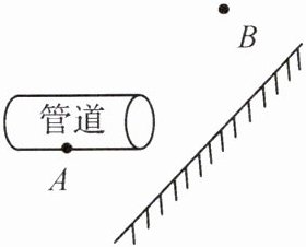 9.(2023·丹东)如图所示,管道内$A$处有一只正在发光的小灯泡,小潘的眼睛在$B$处看到了平面镜中小灯泡的像,请画出小潘看到小灯泡$A$的像的光路图。