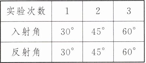 (2)使一束光贴着纸板$A$沿$EO$方向射向平面镜,观察反射光在纸板$B$上的位置,描绘出反射光和入射光的径迹,如图甲所示。量出入射角和反射角,并记录于表格中。比较反射角和入射角的大小,可以得出的结论是
