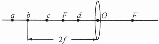 3. 小明在探究凸透镜成像规律时,保持凸透镜的位置不变,先后把蜡烛放在如图所示的 a、b、c、d 四点,并分别调整光屏的位置。请回答下列问题。