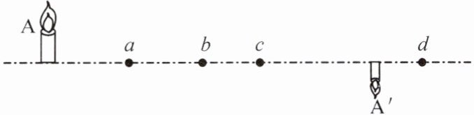 7. 如图是物体 A 通过凸透镜(透镜未标出)成像的示意图。当凸透镜放在哪一点时,能产生图中所成的像 A'(