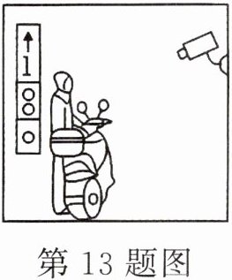 13. (2024·常州)《重庆市消防条例》规定:2023年7月1日起,禁止携带电动自行车或其电池进入电梯轿厢。一旦有人违规操作,会被电梯内的摄像头拍摄成像并智能识别,电梯将停止运行并发出声、光警报。如图所示,某次发出警报时,摄像头凸透镜成像的像距为10.1mm,则凸透镜的焦距可能为(
