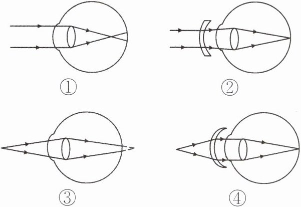 4. 现在中学生近视眼患者越来越多,保护眼睛刻不容缓,学校开展了上午、下午各一次眼保健操活动来预防近视,下列关于近视眼成因及其矫正的原理图正确的是(
