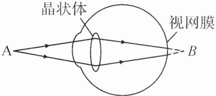 5. 如图所示,来自物体 A 的光线经过眼睛的晶状体成像在视网膜后面的 B 点,要使成在 B 点的像靠近视网膜,物体 A 应该向