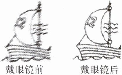 3. 如图是小明戴上眼镜前和戴上眼镜后观察到的远处帆船的情形,由此可以判断出小明视力存在的问题以及所戴的眼镜的镜片类型分别是(