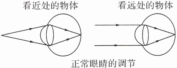 2. 如图为正常人眼看远近不同物体时眼睛的自动调节,以下分析正确的是(