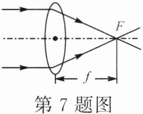 7. 如图所示,在测量凸透镜的焦距时,冬冬想:如果分别用红光和紫光平行于同一个凸透镜的主光轴射入,红光、紫光对凸透镜的焦距是否不同呢?请写出你的推断: