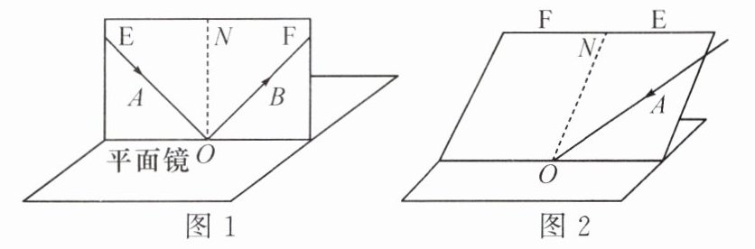 (2)将一束光贴着纸板 E 沿 AO 射到 O 点,纸板 F 上会显示出反射光束 OB;为探究反射光和入射光是否在同一平面内,下一步的操作是