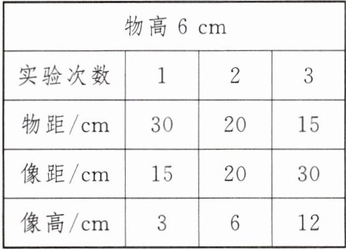 (4)小明多次改变物距,移动光屏确定像的位置,记录成像的特点如表所示。