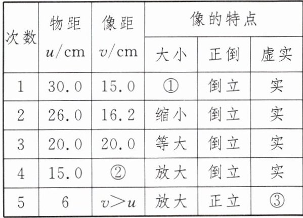 根据凸透镜成像规律写出表中所缺内容:①