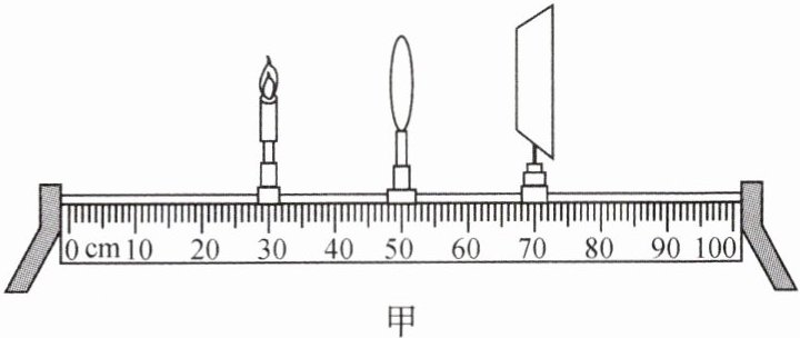 在同一水平高度。(2)当蜡烛、凸透镜、光屏在如图甲所示的位置时,光屏上出现了等大清晰的像,此凸透镜的焦距为