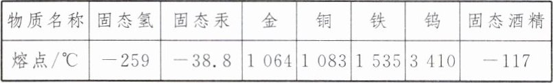 8. 根据下表中几种物质的熔点(在标准大气压下),判断下列说法中不正确的是(