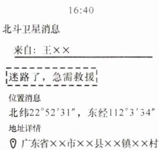 3. 北斗导航系统通过确定用户的经纬度来定位。短信中的坐标位于(