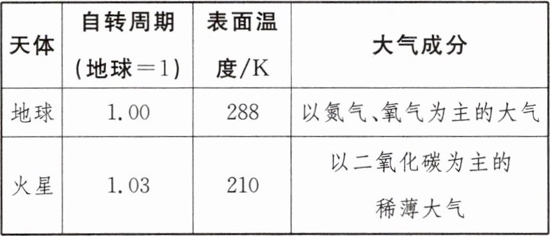 (1)在探索地外生命的过程中,火星被认为是太阳系存在生命可能性最大的行星,结合图表说明原因。
