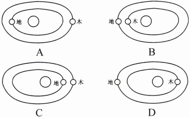 2. 2024年12月8日,木星冲日。冲日是指某行星在绕日公转过程中运行到与地球、太阳成一直线,地球位置居中的一种现象。木星冲日时,太阳、木星、地球三者的位置关系正确的是(