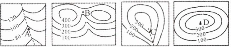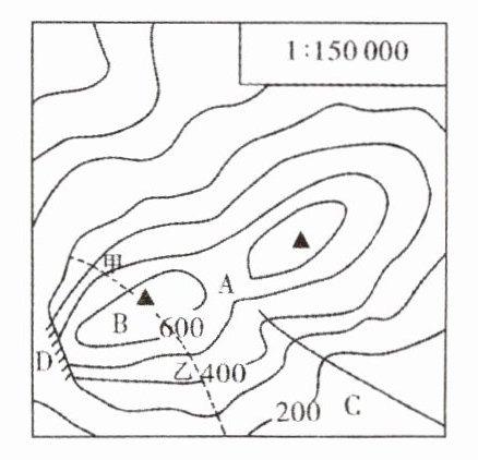 下图是某等高线地形图(单位:米)。读图,完成 1~2 题。