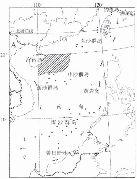 中国海军“佛山号”护卫舰正在图示海区(阴影部分)进行战备巡航,以此保卫祖国的蓝色海疆。读中国部分海域图,完成 1~3 题。