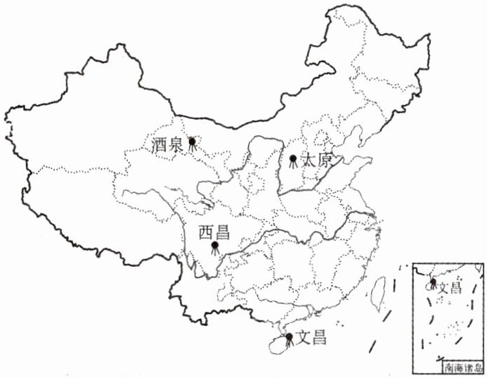 7. 文昌、太原、西昌、酒泉所在省级行政单位的简称分别是(