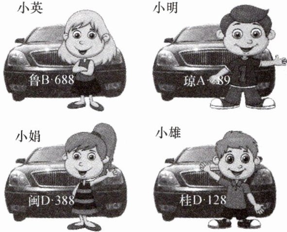 下图是小英、小明、小娟、小雄分别在自家小轿车前的留影。据图完成3~4题。