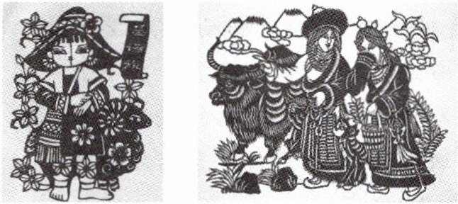 (跨学科·美术)剪纸是中国传统民间艺术,反映了人们的生活环境、习俗和风情等,寄托了人们对美好生活的向往。读我国少数民族剪纸图,完成1~2题。