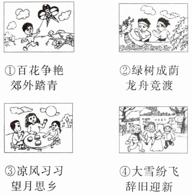 14.(跨学科·美术)(北京中考)传统节日是传承中华优秀传统文化的重要载体。下图为我国某地四大传统节日景观及习俗简笔画。图中景观及习俗,与传统节日对应正确的是(