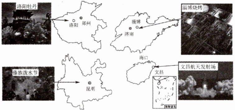 18. “淄博邀你去烧烤,洛阳喊你赏牡丹,到西双版纳去泼水,来海南文昌看火箭”是2023年网络热门话题,都与地理密切相关。下图示意我国部分省级行政区轮廓,读图,回答下列问题。(10分)