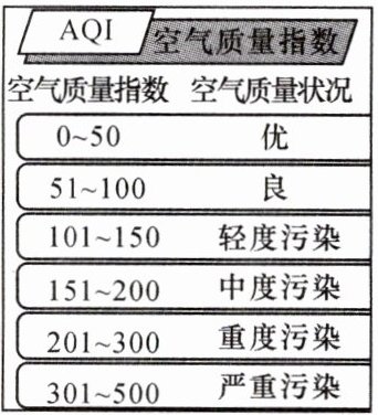 (2)西北风6级,沙尘暴。空气质量指数越大,表明空气质量状况越差;空气质量指数越小,表明空气质量状况越优。