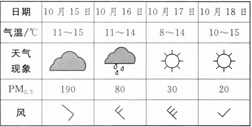 )A. 15日多云,空气质量较差
