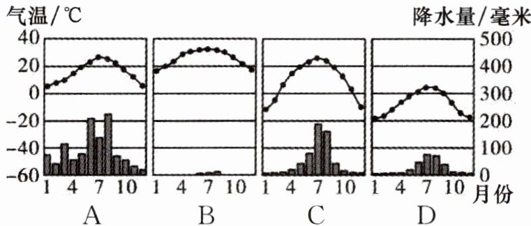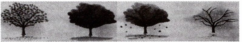 3. (跨学科·美术)家住山东的小亮,用彩笔画出他家门前的一棵树,同一棵树在一年中有以下四个形象,关于小亮家所在地的气候特征叙述正确的是(