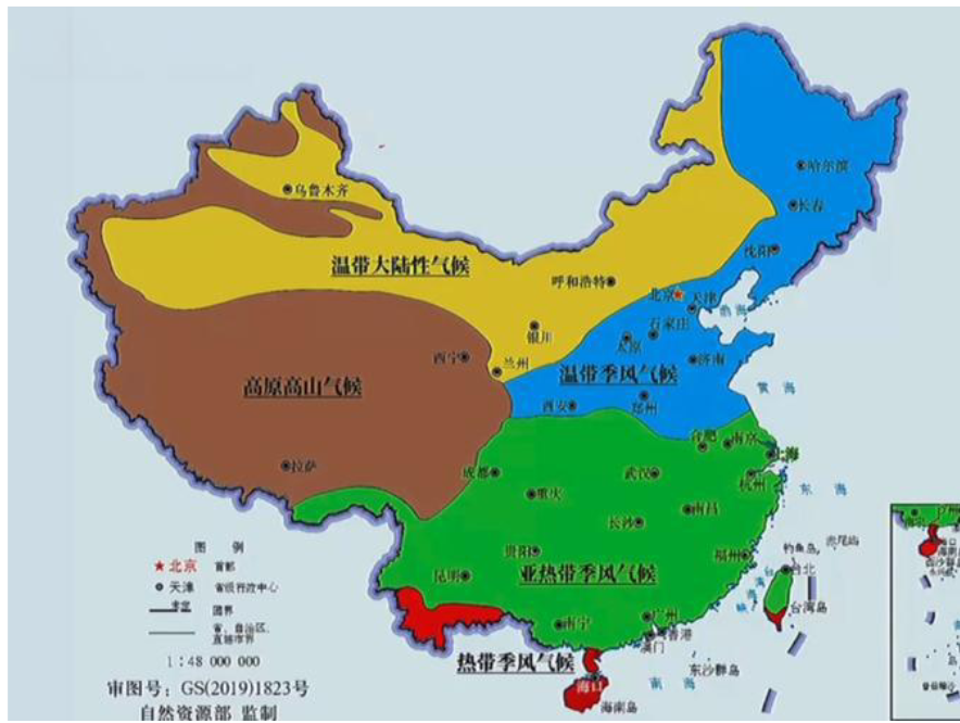 1. 我国地域辽阔,各地气候千差万别。根据各地气温和降水等特征,我国的气候可以划分为