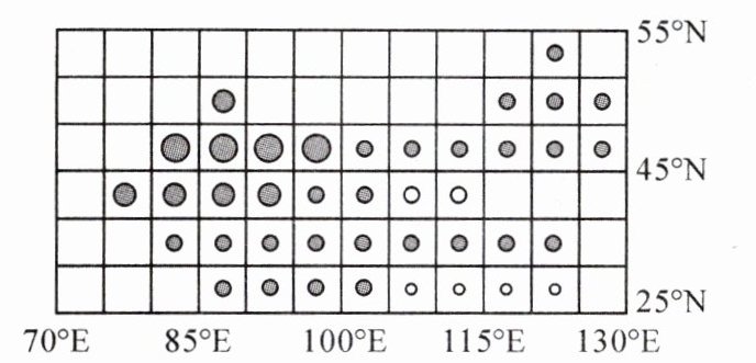 降水变率是指各年降水量的距平数(距平数为当年降水量与多年平均降水量之差)与多年平均降水量之比的百分数,降水变率大表示降水不稳定。读我国部分地区降水变率图,完成9~10题。